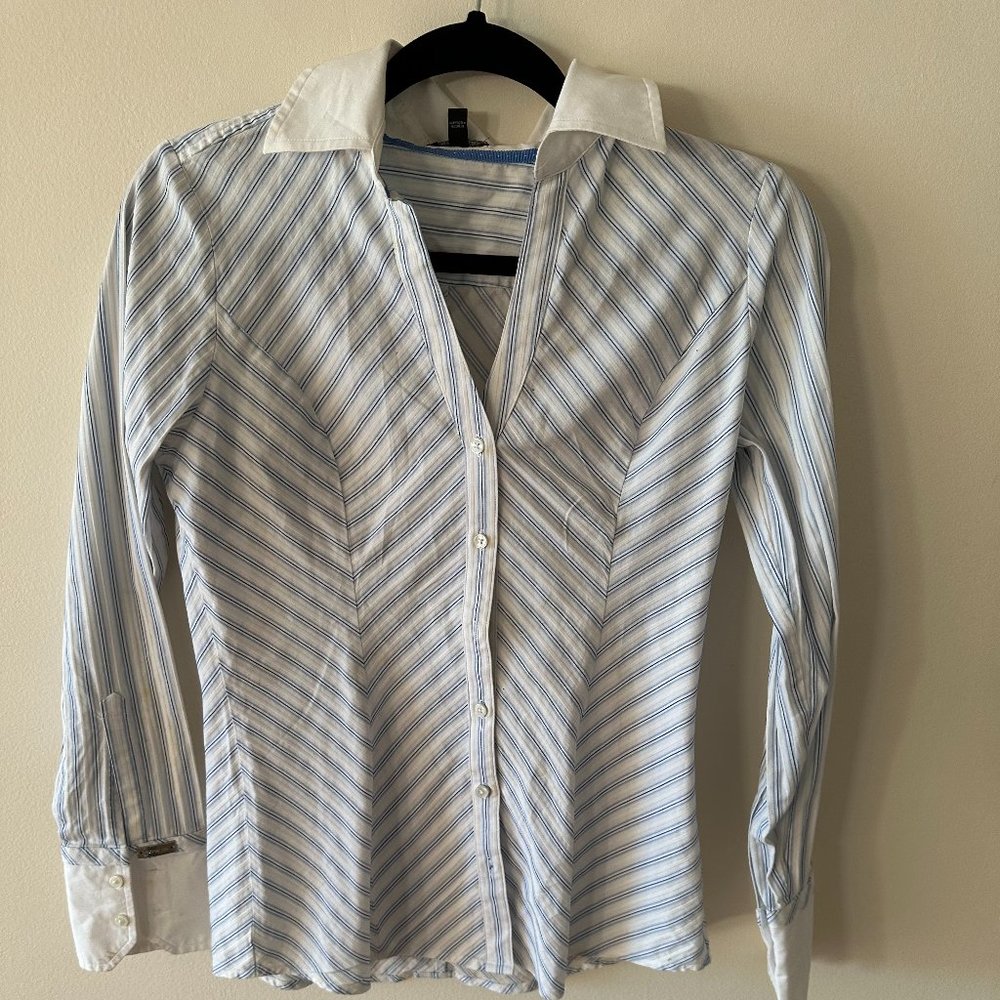 Express Essential shirt for work with diagonal stripes in blue