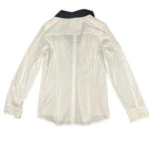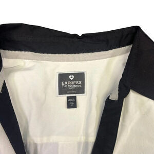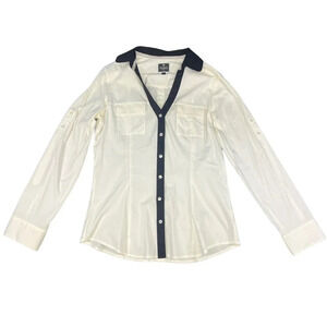 Express Essential Women's Medium White Contrast Collar Long Sleeve Button-Up