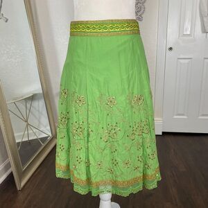 Express Ethereal Fairy Core Green Cotton Gold Thread Sequin Lace Midi Skirt S