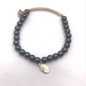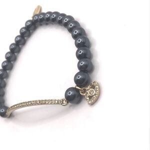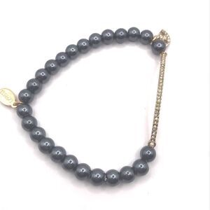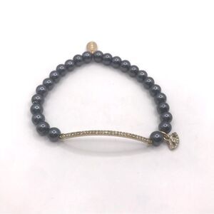 Name brand fashion costume jewelry This stunning Express bracelet features elegant gray beads complemented by a sleek gold rhinestone accents and evil eye charm. Perfect for adding a touch of sophistication to any outfit. New, see pictures for measurements.