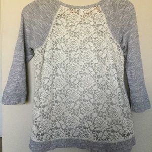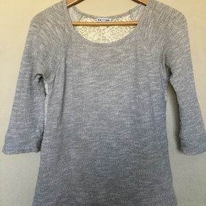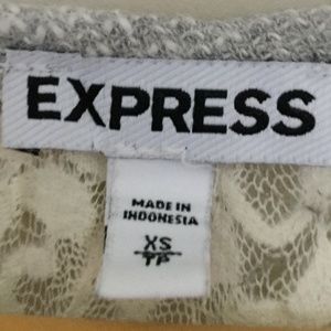 Express Extra Small Heather Gray Baseball Tee with Floral Crochet Back