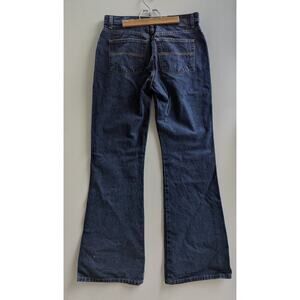 The Express Extreme Flare Jeans in women's size 9/10 L are a stylish and comfortable denim choice for any wardrobe. Made from 100% cotton denim, these solid blue jeans feature a button closure and a mid-rise fit. The flared style gives them a unique and trendy look, perfect for any season. With a 5-pocket design and a 34-inch inseam, these jeans offer both style and functionality for a versatile everyday wear.