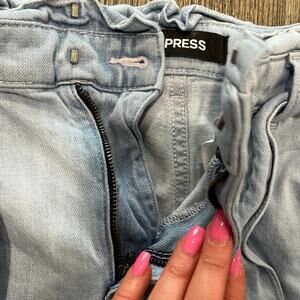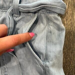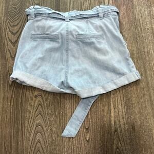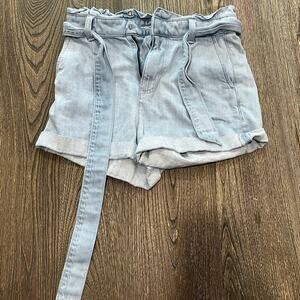 Express Extreme High Rise Shortie Shorts Belted Denim Light Wash Blue Size 2