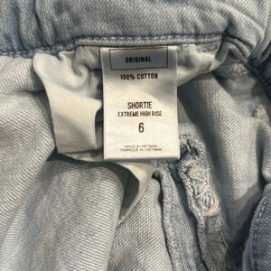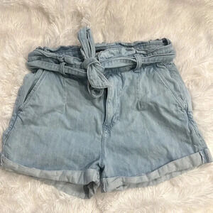 Excellent condition are these Express Shortie Super High Rise Tie Waist Cuffed Jean light wash Denim Shorts