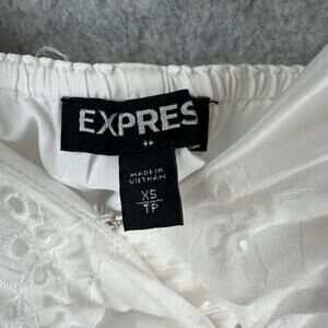 Express Eyelet Sundress Size XS White Ruffle Flowy Mini Faux Wrap Dress Cottage