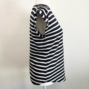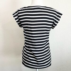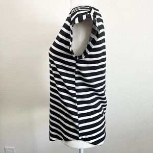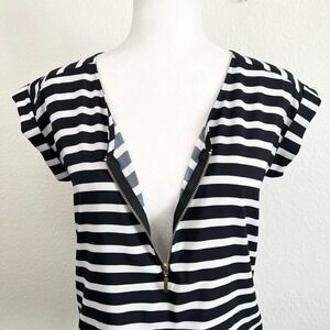 Express Factory Black White Stripe Relaxed Fit Short Sleeve Zip Front Blouse XS