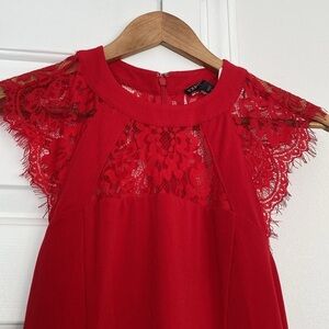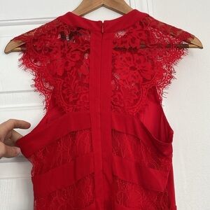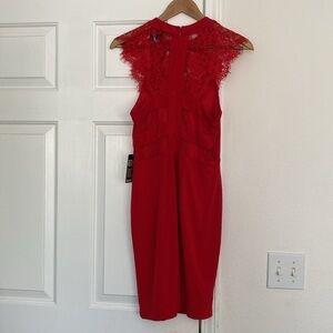 Express Factory NWT red bodycon mini dress with delicate lace detailing. Size 8. Sexy and vibrant! Perfect for a night out or party. Zips and clasps in the back.