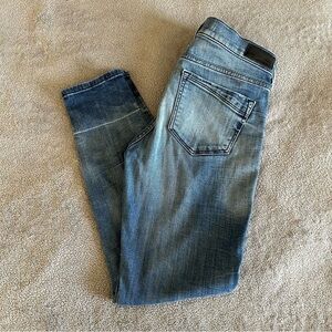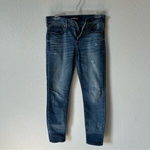 Express Faded distressed Women’s 0 Mid Rise Legging, Skinny Blue Denim Jeans