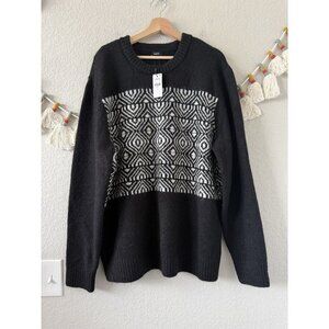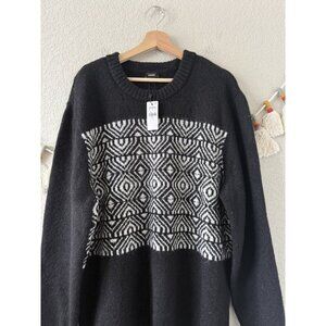 Express Fair Isle Black Knit Crewneck Sweater Cabincore Cozy Geometric NWT Men L