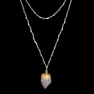 Express Faux Amethyst Necklace Double Strand Purple Raw Pendant Gold-tone Boho