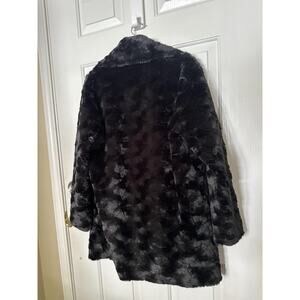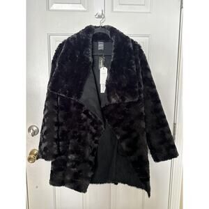 Express Faux Fur Coat Womens XS Black Plush Teddy Open Front Shawl Collar Winter