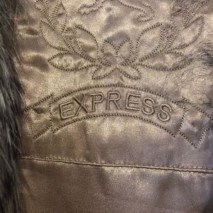 Express NWOT Size Small Faux Fur Vest in color mix of Brown and Tan. Two front side pockets. 3 Hidden hook and eye closures. Fully lined and gorgeous over top or sweater. Perfect for Fall and Winter. Acrylic/Polyester. Measures 20” Armpit to