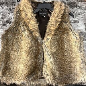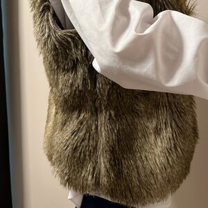 Pre owned never worn large brown fur vest hook and eye closure country chic neutral Earthtone animal luxurious