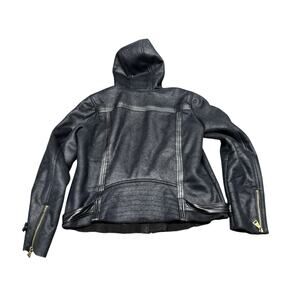 Express Faux Leather Hooded Moto Jacket Black Gold Zip Details Size Large