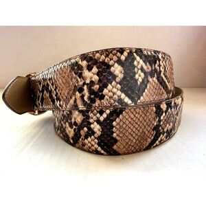 Express Faux Snakeskin Womens Belt Beige Brown Size Small S Brass Buckle 26-32"