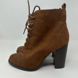Express Faux Suede Lace Up Heel Ankle Boot