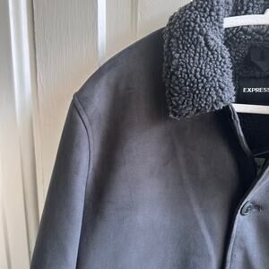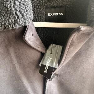 Express Faux Suede Sherpa-Lined Trucker Chore Jacket Charcoal Gray NWT