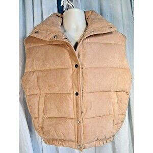 Express Faux Suede Tan Puffer Vest Zip Sample Size Mens Small Womens Large