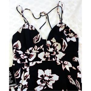 Express Fit & Flare Cut Out Dress | Black Floral Strappy Lined NWT | Size 6