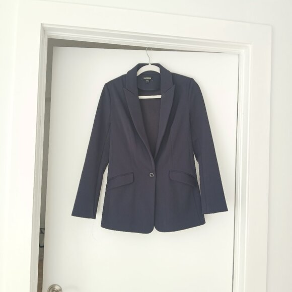 Express tailored relaxed blazer complete with button closure shoulder pads, Navy blue. Size S. Nylon spandex polyester.