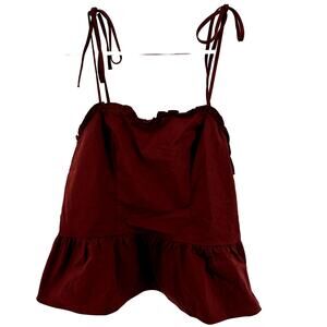 Express Fitted Tie Strap Peplum Cami Square Neck Smocked Ruffle Chic Red Small