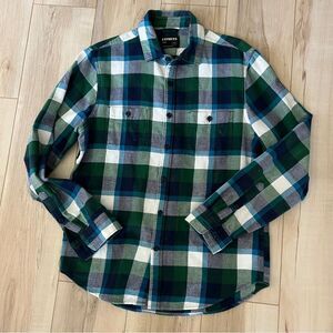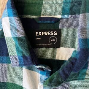 Express Flannel Button Down Green/Blue Plaid Super Soft Cotton Size Medium