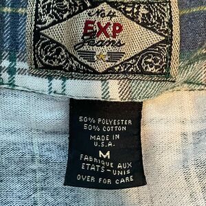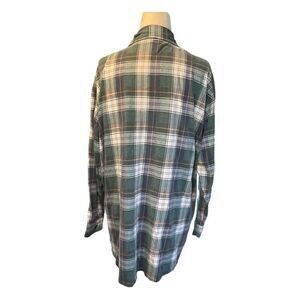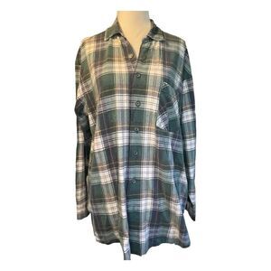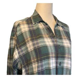 Express Flannel Button Down Shirt Muted Blue Green White Tartan Plaid Top M