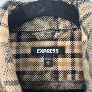 Express Flannel Shirt Women's Medium Brown Plaid Button Up Long Sleeve