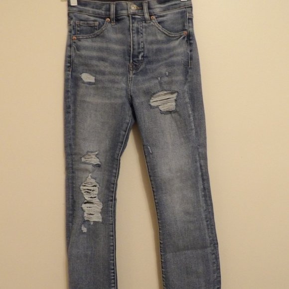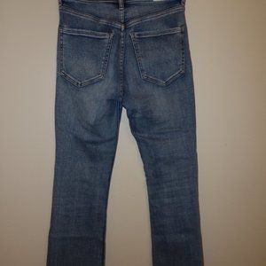 distressed raw hem cropped flare high rise size 0 medium wash