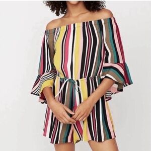 Express Flare Sleeves Shorts Romper Size Medium Multicolored Stripes Women's