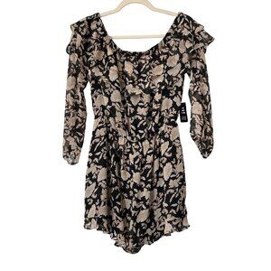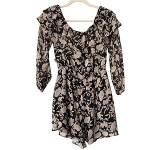 Express Floral 3/4 Sleeve Romper Women S Off The Shoulder Black Beige Hippie NEW