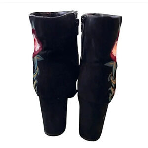 Express Floral Botanical Embroidered Heeled black faux suede ankle Booties, size 8