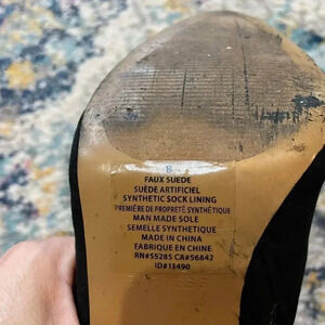 Express Floral Botanical Embroidered Heeled black faux suede Booties, size 8