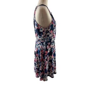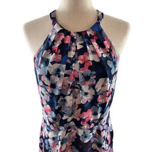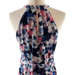 Express Floral Chiffon Sleeveless Halter Fit and Flare Dress Size 12 Navy Blue