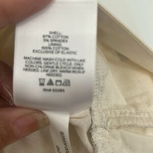 This Express blouse features a charming puff sleeve design in a soft cream color, offering a relaxed and cropped fit. The light and airy fabric makes it perfect for a casual yet stylish look. 97% count 3% spandex. The lining is 100% cotton. Machine wash cold with like colors.