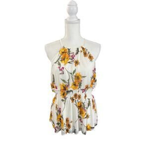 Express Floral High Neck Smocked Peplum Keyhole Back Top Size Large New with tag