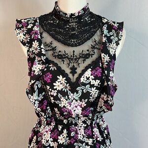 Express Floral Lace Crochet Black High neckline Dress Size Small