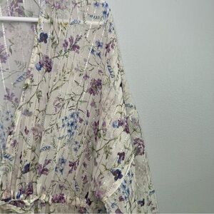 Express Floral Maxi Duster Shimmer Details Drawstring Metallic Beach Sz M boho