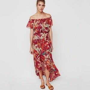 Express Floral Off The Shoulder Maxi Dress RED XS Like new condition