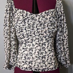 Express Floral Pleated Peasant Sleeve Blouse xs NWT