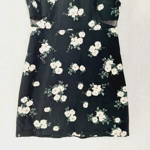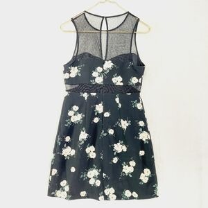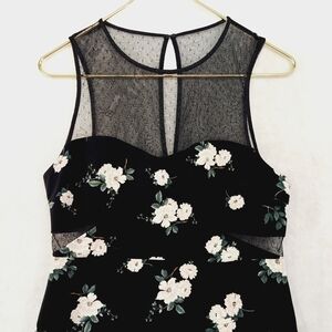 Express Floral Print With A Sweetheart Mesh Neckline Black Mini Dress P2158