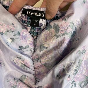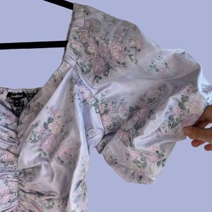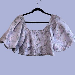 Express Floral Puffy Sleeve Cropped Ruched Cottagecore Top