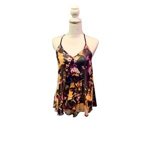 Express Floral Front Ruffle Tank Top Cami Blouse Multicolor