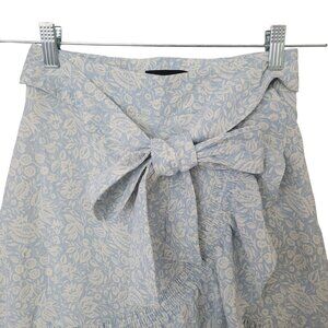 Express Floral Ruffle Faux Wrap Skirt Bow Tie Waist Size 00 Light Blue NWT