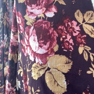 Beautiful floral dress sheer printed sleeves trim has ruffles zipper in back