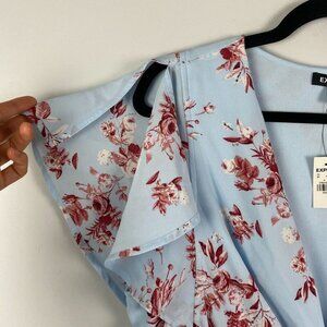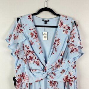 Express Floral Twist Front Flutter Sleeve Dress Size XL V Neck