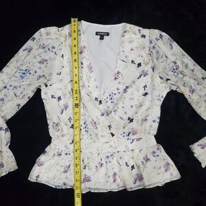 Elegant floral blouse with a flattering V-neck design. Perfect for any occasion.