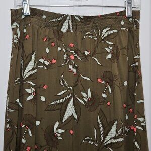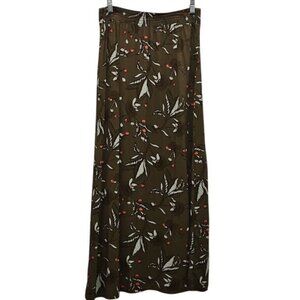 Express Floral Wrap Pull On Maxi Skirt Size Small Olive Green Careerwear Office
