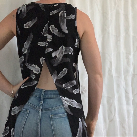Black with White/grey feathers Split back Slightly sheer Love this Shirt Size Small