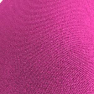 Pretty color, kind of a raspberry-fucsia! This sweater dress is very flattering, it has slight rushing on each side in front, along seams placed about 2" in front of the side seams. It has a round neckline.